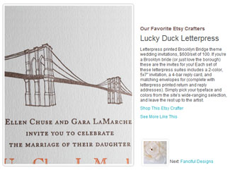 Martha Stewart Weddings In 2009 Lucky Duck Press was selected as one of Martha Stewart's "Favorite Etsy Crafters". |